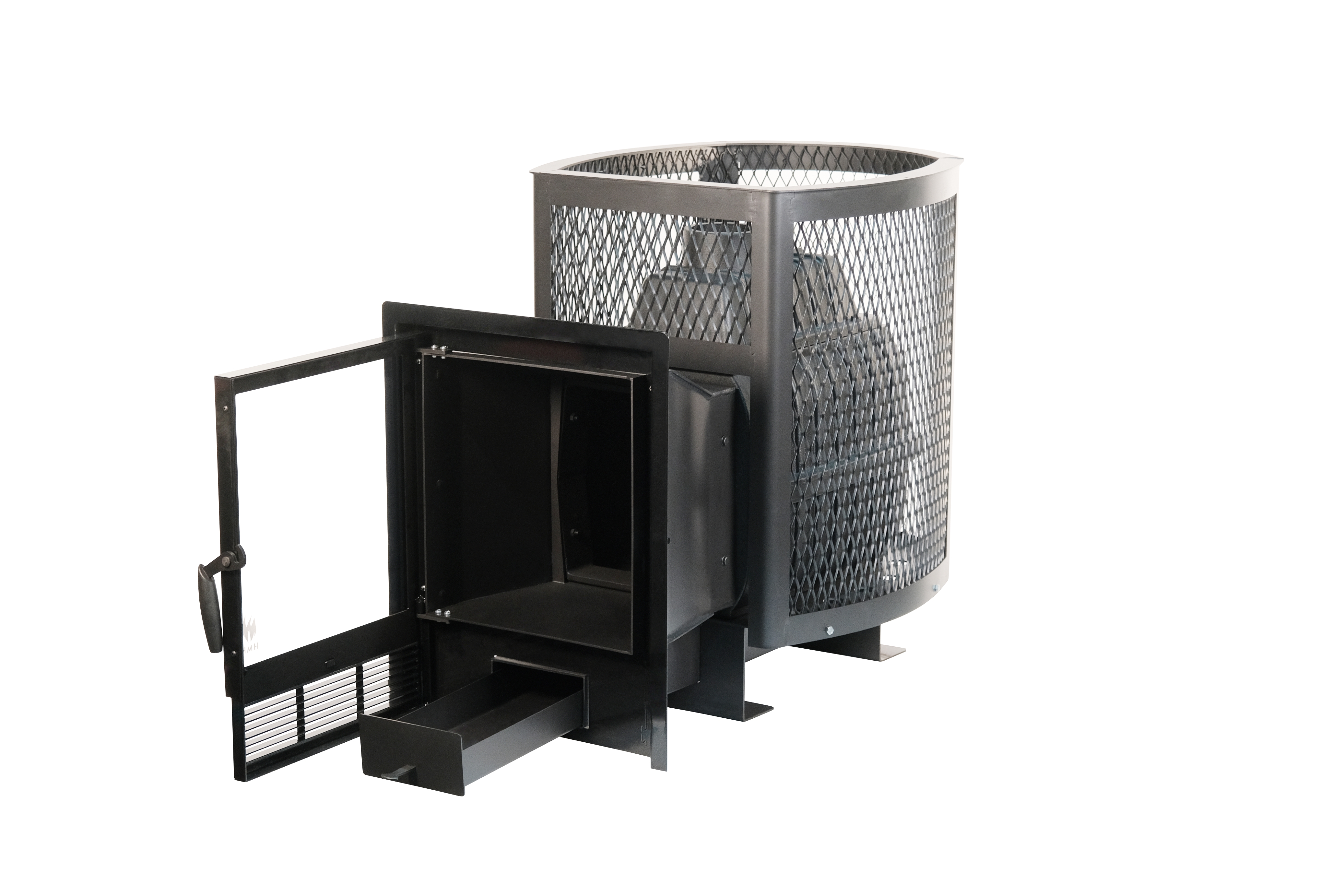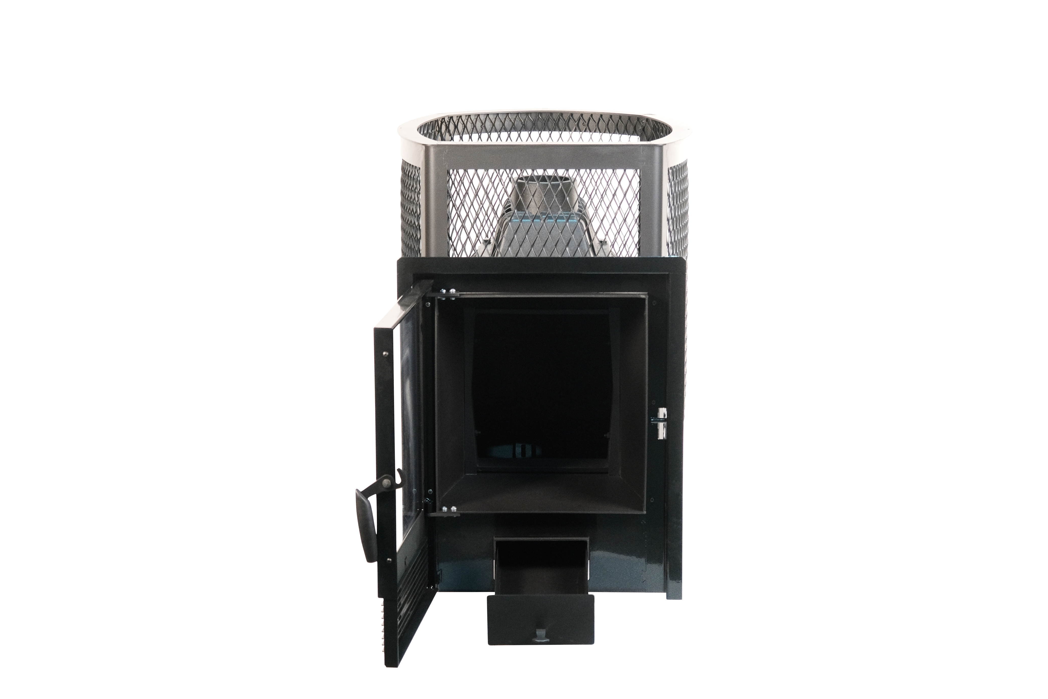 Чугунная банная печь "Сибирь-24 ПРО" с панорамной дверцей в облицовке сеткой для камней - один из самых прогрессивных вариантов среди многообразия чугунных банных печей «Сибирь». Печь представляет собой традиционную сборную чугунную конструкцию, состоящую из 3-х сегментов: нижней и верхней частей топочной камеры, а также дополнительным элементом с дымоотводящим патрубком. Толщина чугунных элементов составляет 8-10 мм, в зависимости от тепловой нагрузки, получаемой в ходе ее эксплуатации. Большое количество камней, способных разместится в печи составляет создает неповторимую эстетику внутри бани и гармонизирует внутреннее пространство, а увеличенная панорамная дверца с утонченной рамкой придает печи футуристичный дизайн. Масса камней, способных разместится в данной модификации печи составляет 140 кг. В нижней части стальной сетки находится опорная площадка, выполненная со специальными отверстиями, позволяющая удерживать камни над полом, а также способствующая беспрепятственно проводить влажную уборку после банных процедур. В настоящее время чугун представляет собой самый жаропрочный, теплоемкий и износостойкий материал, выдерживающий предельные колебания температуры и влаги. Это свойство позволяет эксплуатировать банные печи "Сибирь-24 ПРО" в длительном временном интервале с высокой интенсивностью, без потери всех изначально заявленных свойств. Печь "Сибирь-24 ПРО" рассчитана на обогрев парильного и смежных помещений бани объемом от 10 до 24 м3.